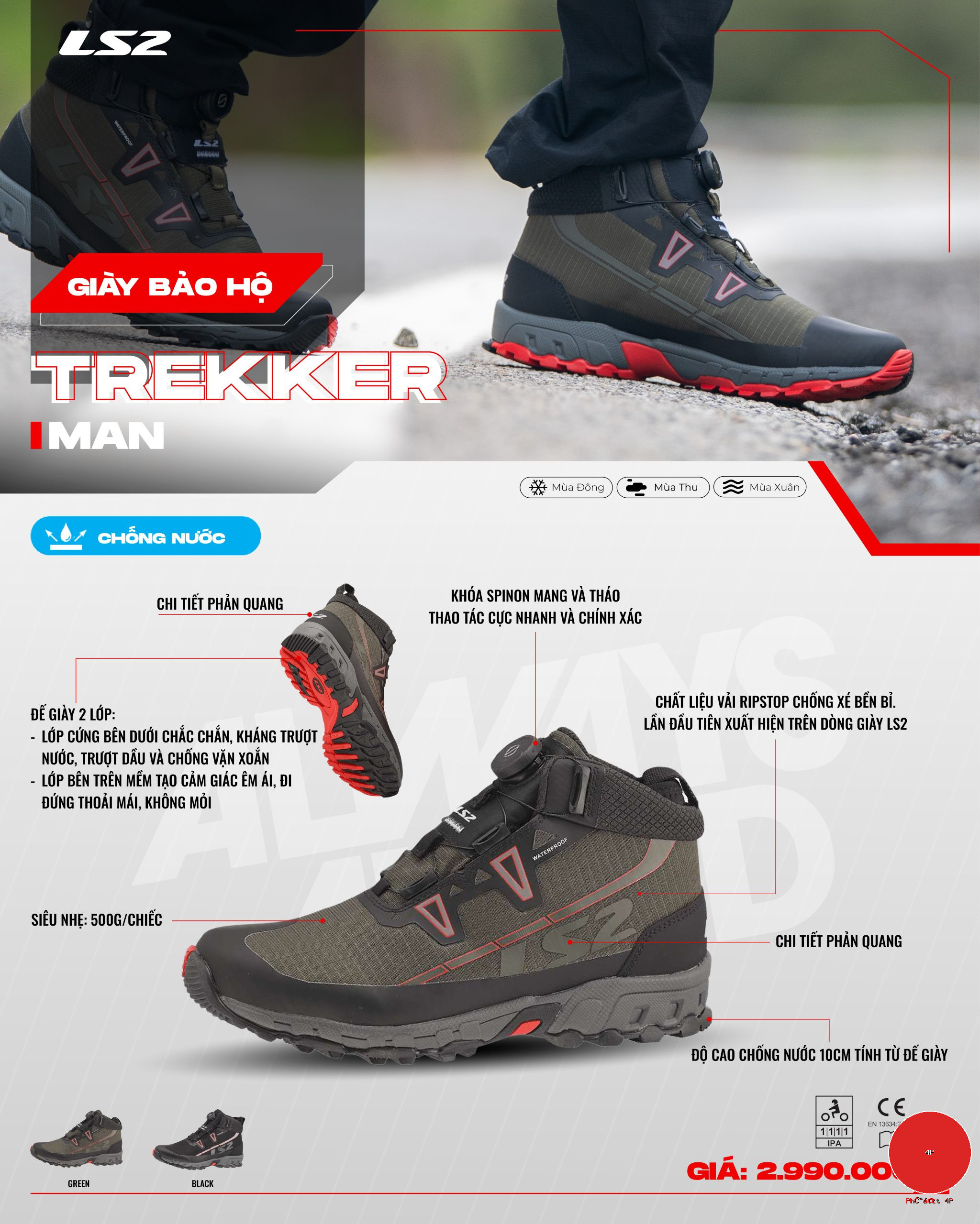Giày Bảo Hộ Đi Xe Máy LS2 Trekker Man WP - Phượt 4P
