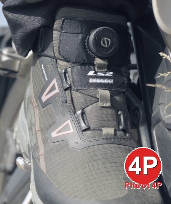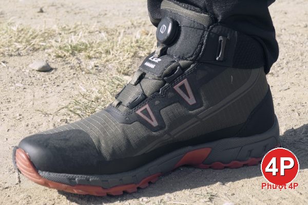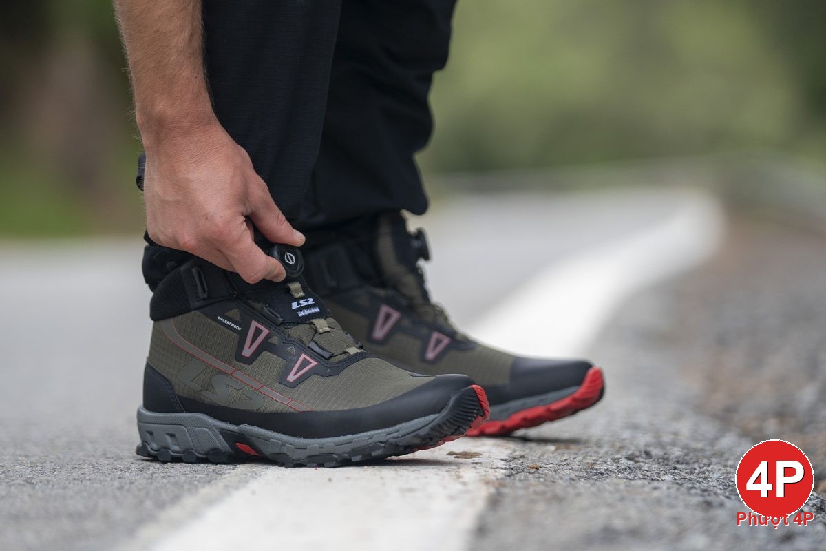 Khóa Spinon (lần đầu trên giày LS2): xoay siết nhanh, chính xác, mang/tháo trong vài giây, không lo tuột dây khi dính bùn/nước.