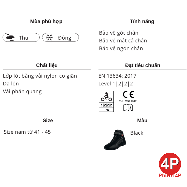 Giày LS2 Dardo Man được đánh giá cao về độ an toàn, được chứng nhận đạt tiêu chuẩn an toàn của Liên minh châu Âu (CE): EN 13634: 2017, Level 1|2|2|2.