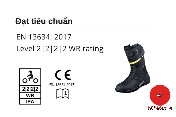 Giày LS2 Goby Man được đánh giá cao về độ an toàn, được chứng nhận đạt tiêu chuẩn an toàn của Liên minh châu Âu (CE): EN 13634: 2017, Level 2|2|2|2 WR rating.