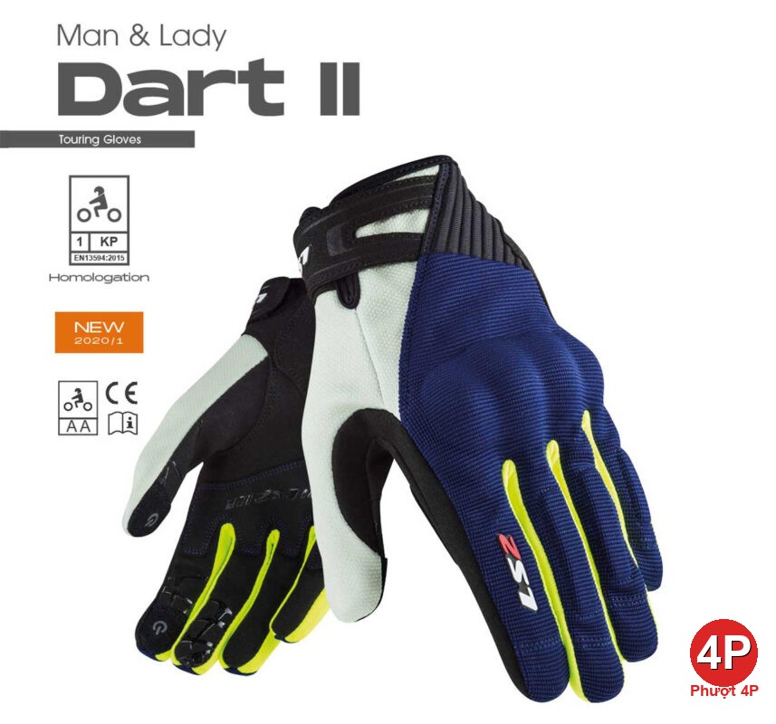 - Găng tay LS2 Dart II Man đạt tiêu chuẩn EN420:2003+A1:2009 và EN13594:2015 của European.