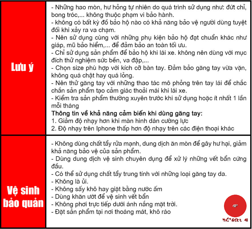 - Phần vải quanh ngón và cổ tay được may từ chất liệu Spandex co giãn nên khá dễ dàng khi mang và tháo găng.