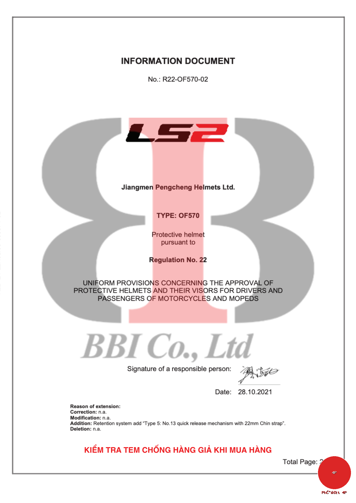 | Đạt chuẩn | Certified ECE 22.05 |