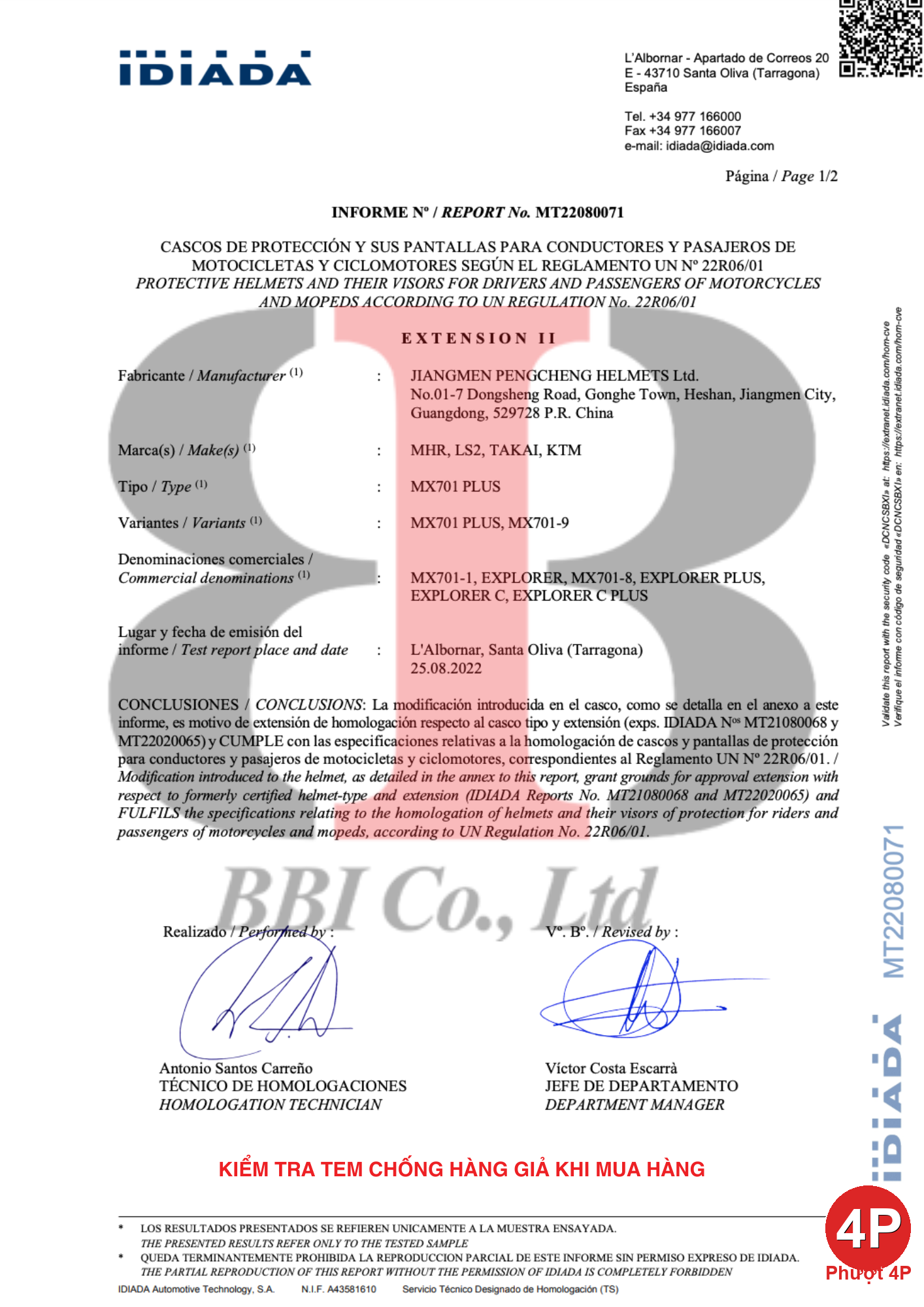 Đạt tiêu chuẩn ECE22.05 Châu Âu, DOT Mỹ và QCVN Việt Nam