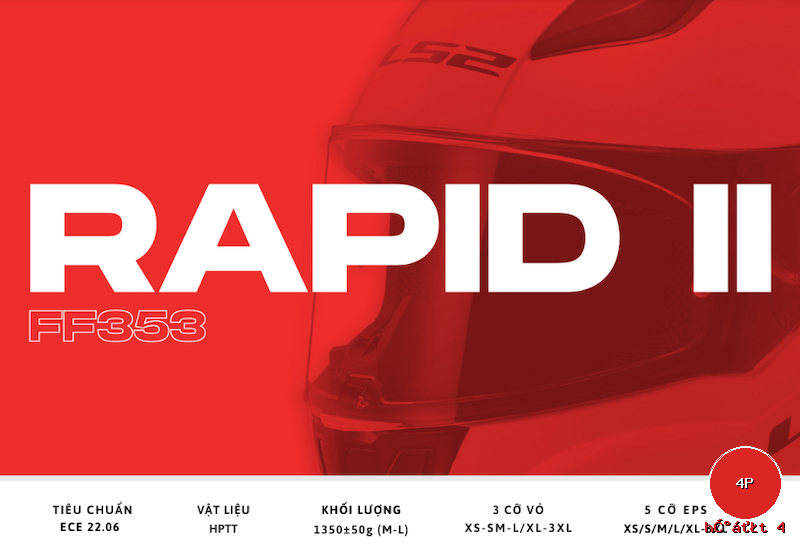 Mũ Fullface LS2 FF353 Rapid II là sự kết hợp giữa khả năng bảo vệ cao với thiết kế đơn giản. Rapid II đạt chuẩn an toàn ECE 22.06, một trong những tiêu chuẩn an toàn nhất thế giới hiện nay. Đặc biệt, trong phiên bản mới nhất này, màu Solid Gloss White (trắng bóng) sẽ ra mắt lần đầu tại thị trường Việt Nam, đây là tem màu được rất nhiều Riders chờ đợi.