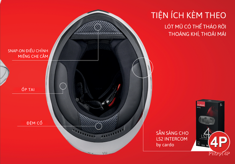 Mũ LS2 được cấu tạo từ nhiều kích cỡ vỏ mang lại sự bảo vệ toàn diện. Mút xốp được làm từ chất liệu EPS cùng với lớp đệm chất lượng cao mang lại sự thoải mái. Tất cả tiện ích trên đều nhờ công nghệ cắt laser 3D độc quyền của hãng LS2 mang đến sự vừa vặn và thoải mái cho người dùng.