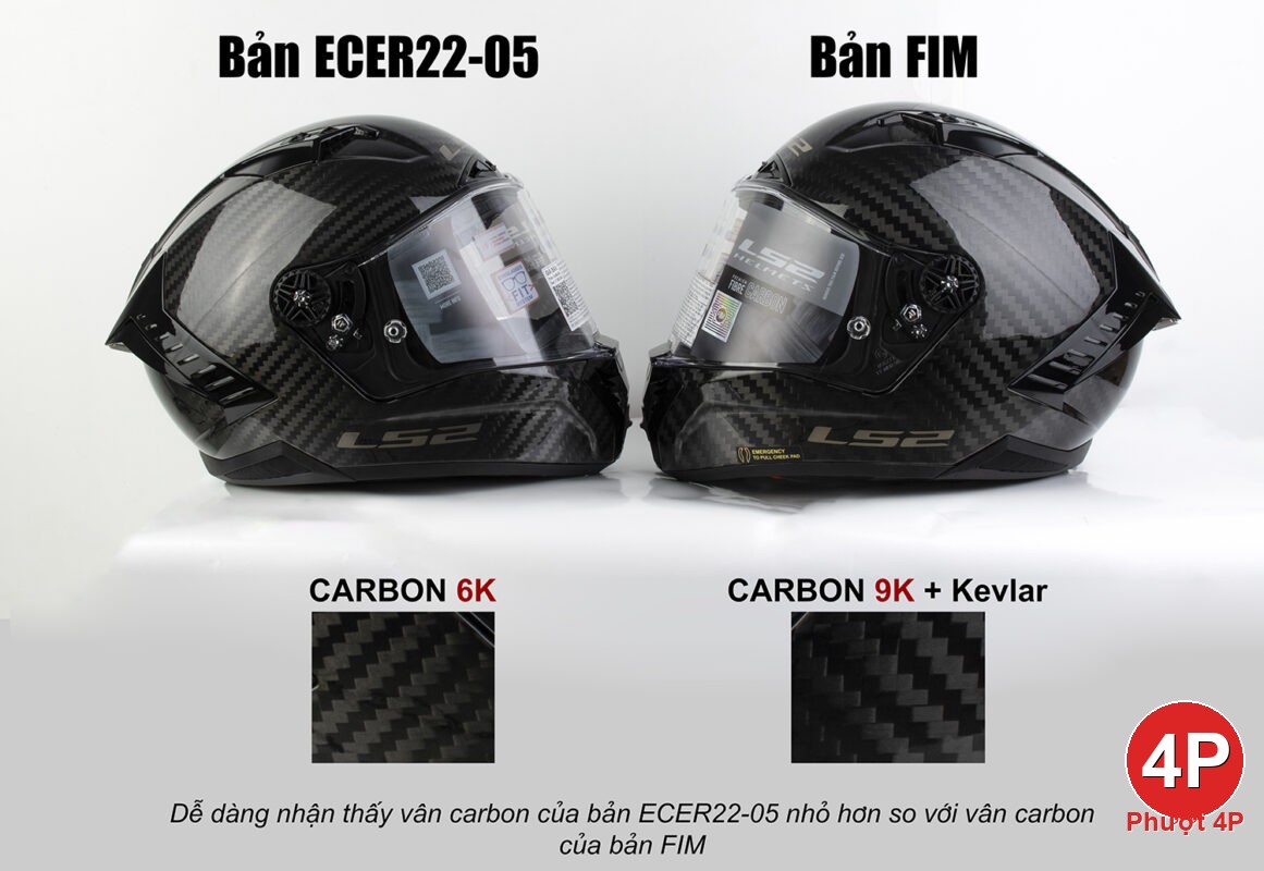 Điểm khác biệt lớn nhất và đắt giá nhất đối với bản thương mại chính là cấu tạo vỏ mũ của bản FIM được làm từ Carbon 9k kết hợp với sợi Kevlar độ an toàn cao hơn, khả năng chống ma sát vài mòn đỉnh cao