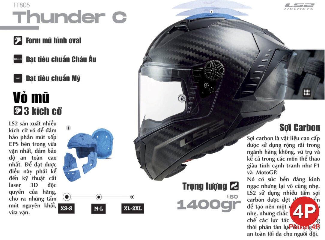 Mũ Fullface LS2 FF805 Thunder FIM Carbon - Phượt 4P