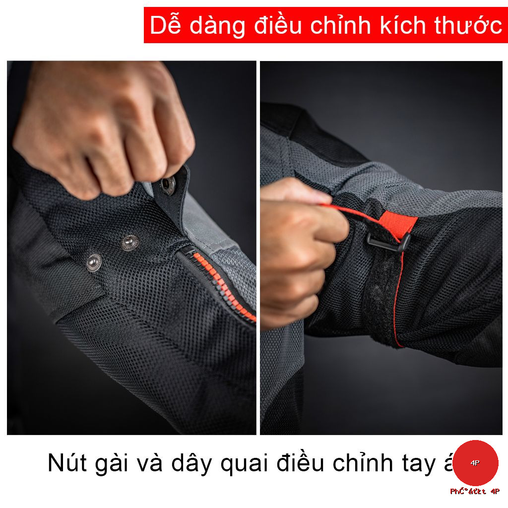 + Phần vải ở phần khuỷu tay và vai được may bằng vải ripstop, tăng khả năng chống rách, chống mài mòn khi xảy ra va chạm, độ thoát khí cao, không co lại khi gặp điều kiện ẩm ướt. Thêm vào đó, tấm lót CE bảo vệ phần vai và khuỷu tay chịu lực tốt, giúp giảm thiểu tối đa lực va đập, bảo vệ người dùng tốt hơn.