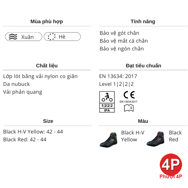 Giày bảo hộ LS2 Garra Man đạt tiêu chuẩn châu Âu EN 13634: 2017, Level 1|2|2|2.